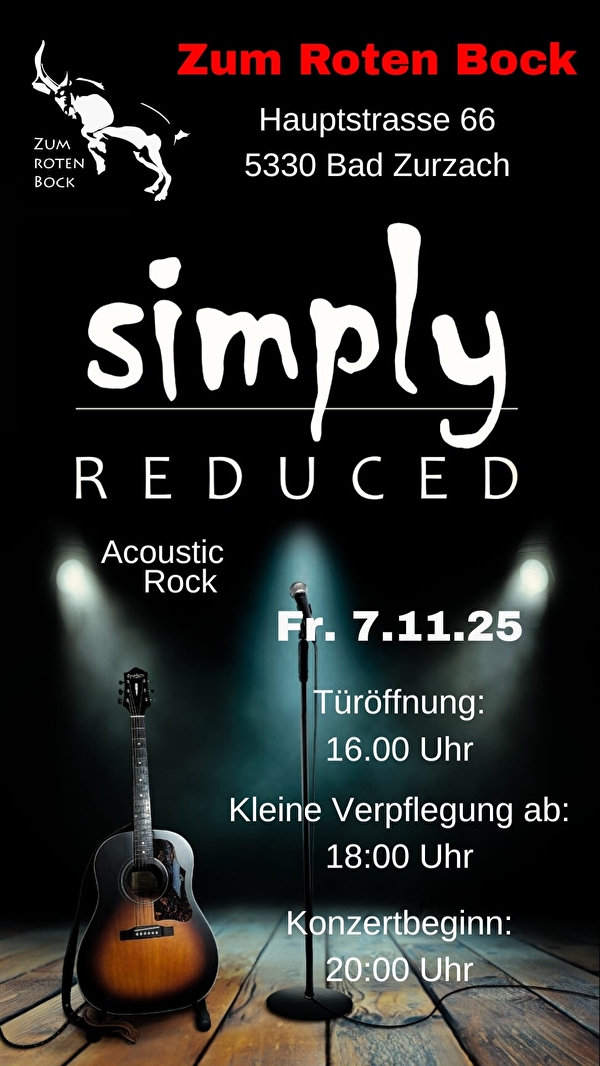 Bar "Zum roten Bock" inkl. Konzert von Simply Reduced um 20.00 Uhr